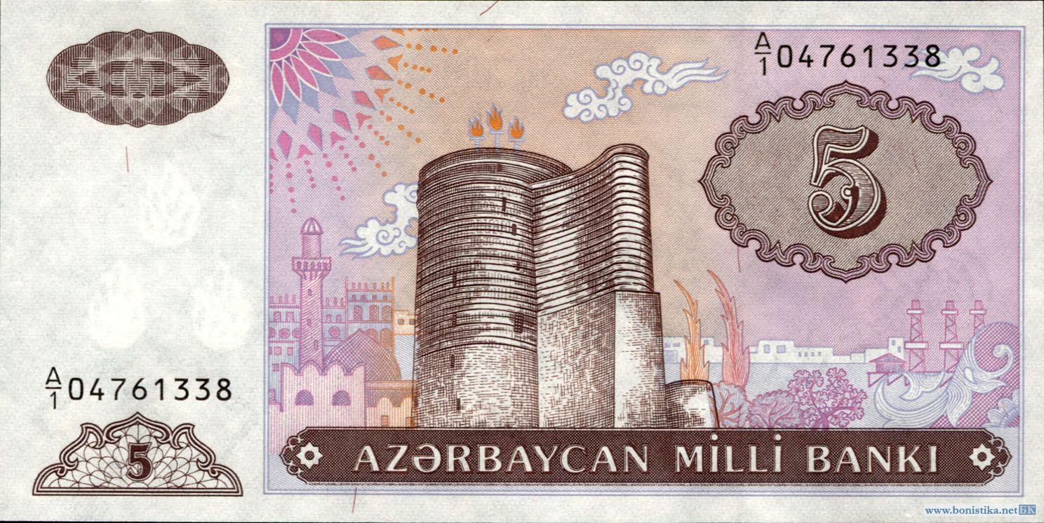 Азербайджан, 1993, 5 манатов, первый выпуск