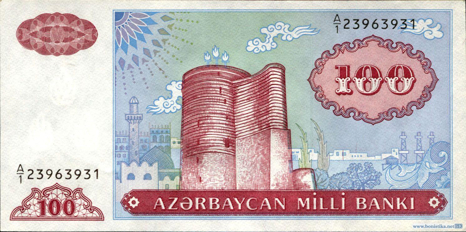Азербайджан, 1993, 100 манатов, первый выпуск