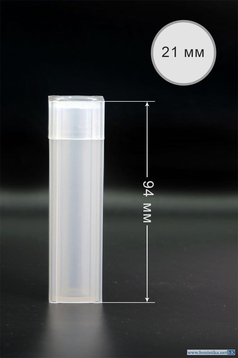| Тубус для хранения монет в капсулах или ролах. Диаметр: 21.3мм Глубина: 94 мм Материал: РР Отлично подходит для хранения монет Украины 2 гривны в роле. |