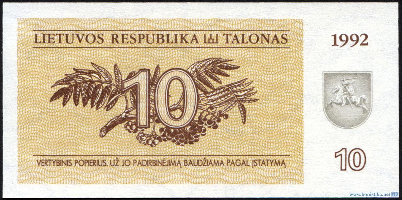 Литва, 1992, 10 талонов