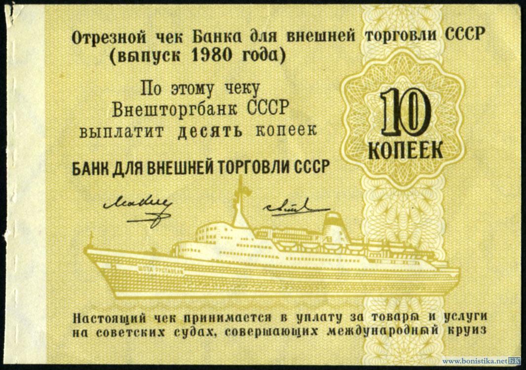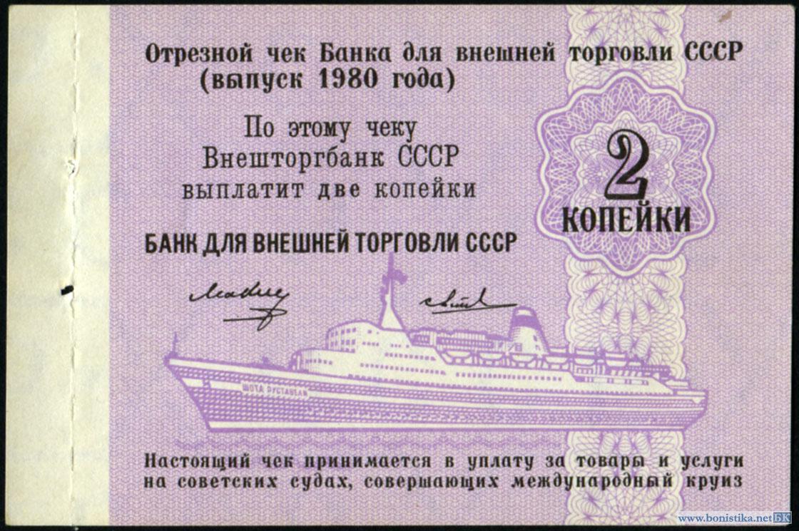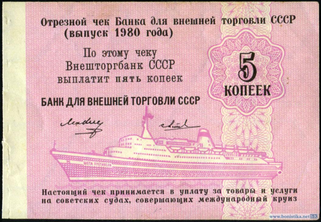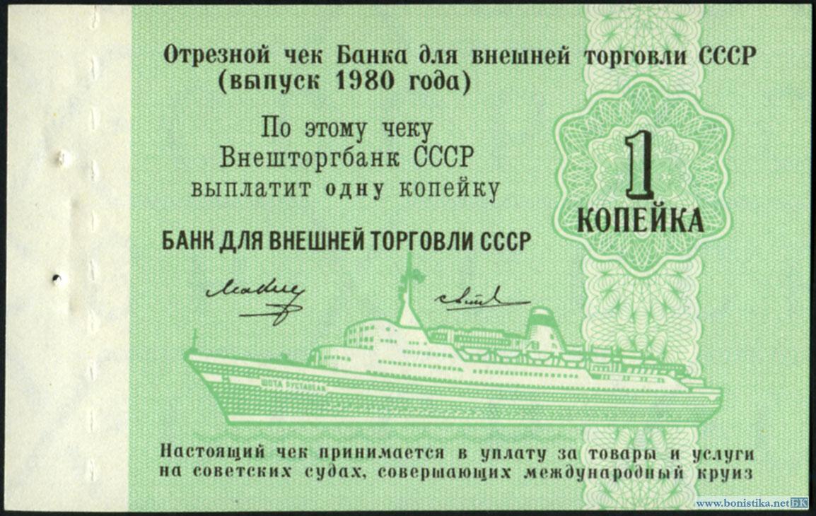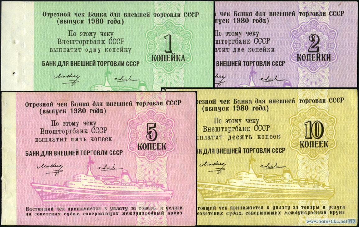 СССР, Заменители валюты, 1980, Круизные чеки 1, 2, 5 и 10 копеек